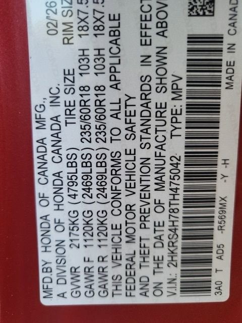 - Vehicle Name: Honda CR-V